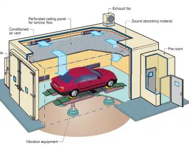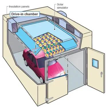 Environmental testing of automobiles requires additional consideration of the facility where the chamber will be installed, and its planned use. Test methods for vehicles can include additional conditions besides temperature and humidity in an attempt to simulate real-world conditions.