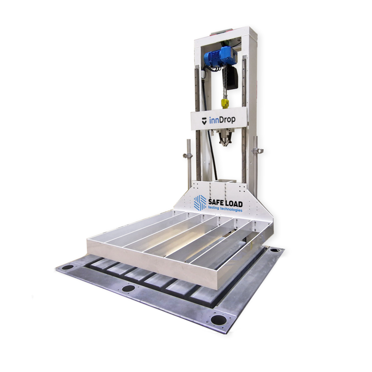 During the drop test, the load is situated on the carriage, that is accelerate downward, allowing the load to free fall. At the end of the stroke the drop carriage is cushioned by hydraulic dumpers.