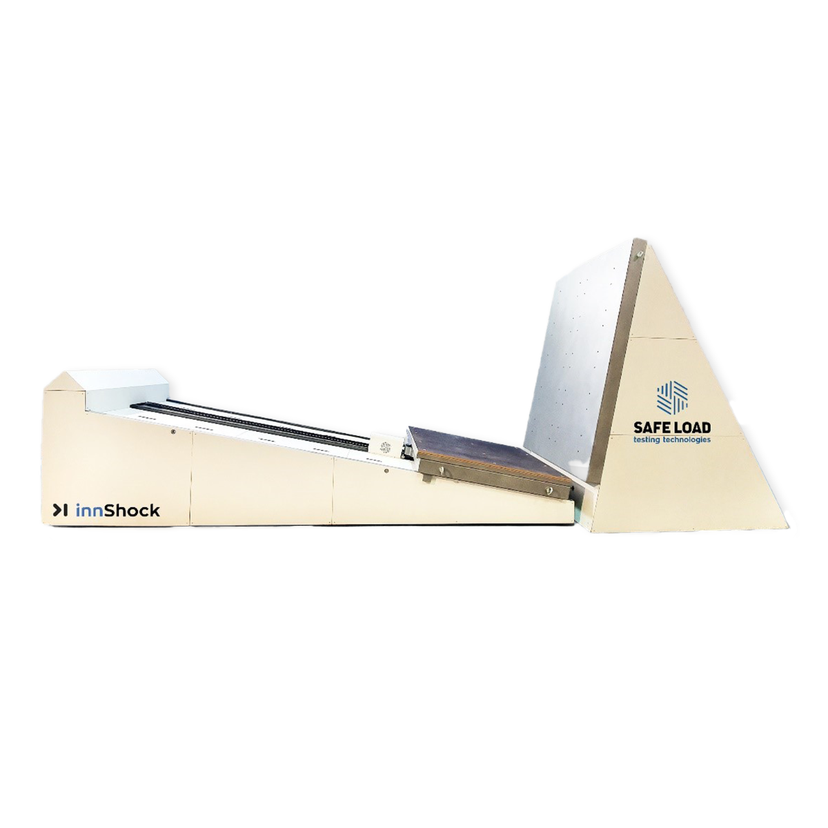 Highly versatile inclined impact tester with specifications including impact velocity of up to 2.5 m/s, testing load capacity of up to 2,000 kg, smooth displacement, hydraulic dumpers, and a 10⁰ inclined plane. User-friendly design with a touchscreen controller and compliance with international protocols. Optional inclusion of innVision ST for unit load deformation measurement and reporting, along with additional options like hazards and speed sensor.