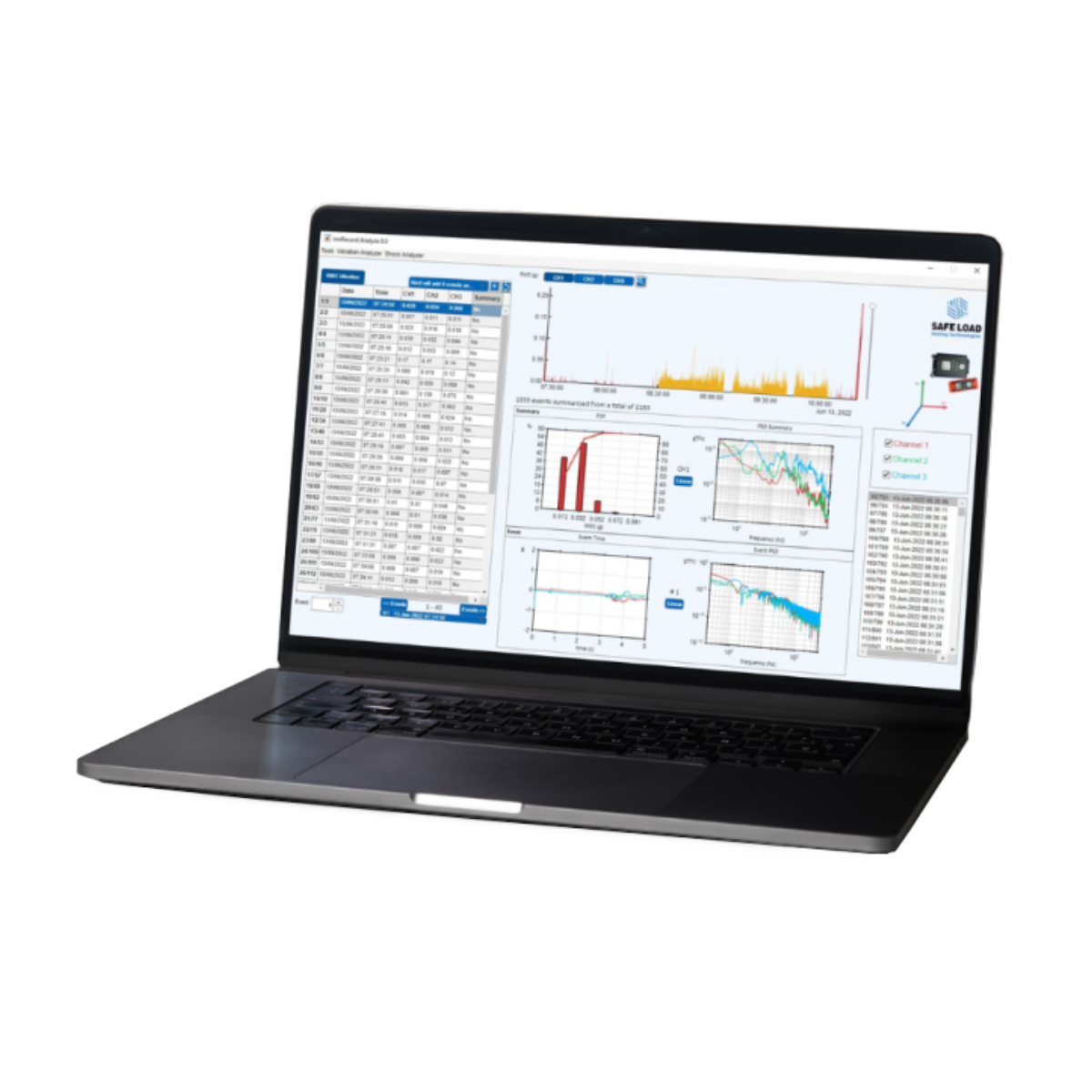 Vibration Analyzer is a software that allows you to analyze the vibrations registered during transportation, calculate PSDs and generate reports.